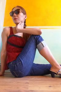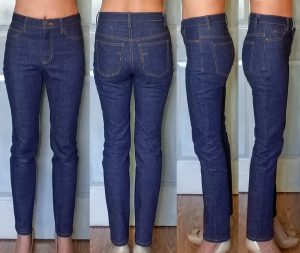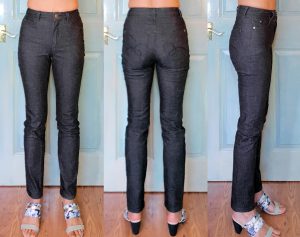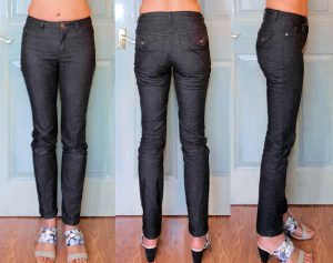 Sewing-wise, I used mostly my sewing machine to give me better control over the stretchy fabric. I’d sew on my sewing machine first with reduced pressure foot pressure, a walking foot, and my machine’s basic stretch stitch – a kind of narrow zig zag stitch. For the waist seam I then sew on the clear elastic, again on the sewing machine. For waist band center back seam and waist seam I then reinforce & clean finish on the serger with a 3-thread overlock.