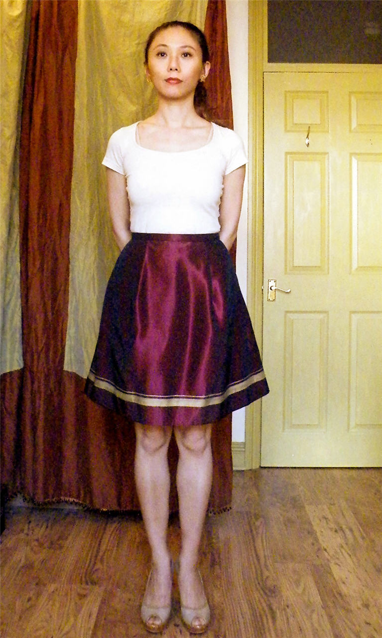 But the ill-fitting top showed through as unsightly bumps. I finally decided to chop off the top and make it into a proper skirt.