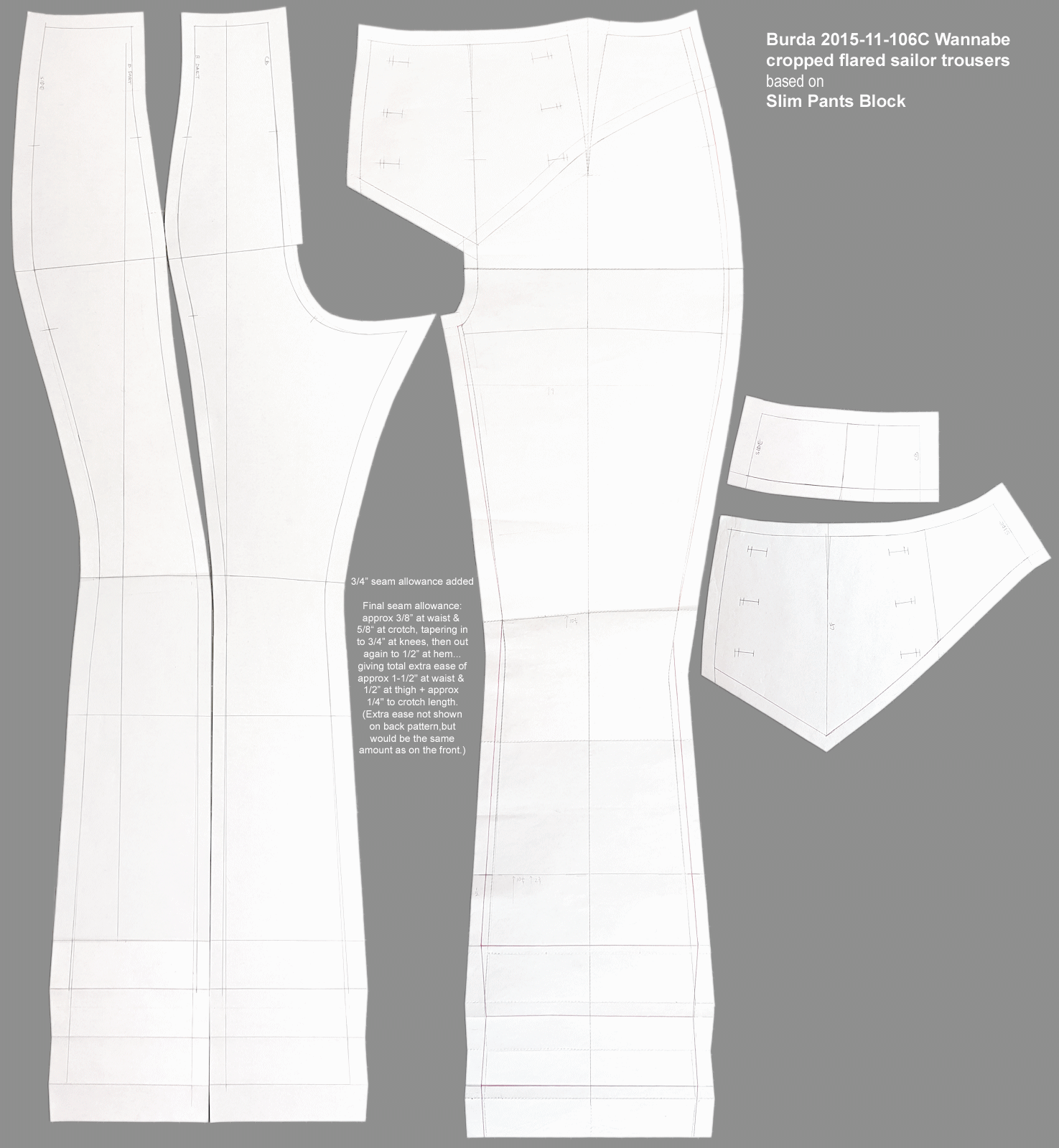 As always, step documentation of my self-drafts are sparse on the ground. Here’s what I can reconstruct interrogating the finished bag & wallet…