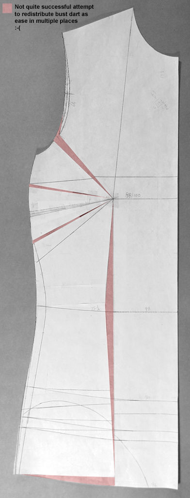 Naughty me thought I’d try my luck and see if I can pivot out the dart here like I did for the woven Tunic Block. The result wasn’t pretty…