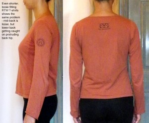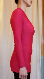 Maybe it’s the fabric. I might try again with a stretchier and/or heavier weight spandex knit. But for now I will work with the dart and try to incorporated the shaping into the designs rather than risk crow feet around my bust!