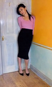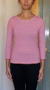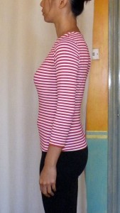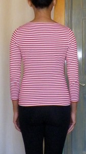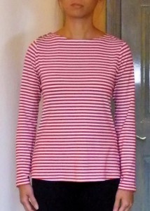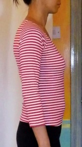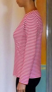 The bust dart on the Stable Knit version seems too high up. But the bustlines are exactly the same level on both version. Maybe the almost non-existent vertical stretch of my worst case scenario ‘Stable Knit’ test fabric is at fault. And to be honest I think I will avoid making fitted stretch tops out of such minimum stretch fabrics and instead use my Moulage with darts / princess seams for shaping and the minimum stretch for wearing ease.