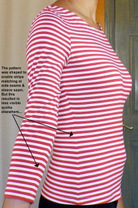 Having worked out what my key figure quirks through fitting wovens, I applied the advice from the Tweaking for Larger Sizes page for Front/Back Waist Issues and The Bigger Bust. Shifting the side seam towards the back at the waist solved #1 and mitigated #2.