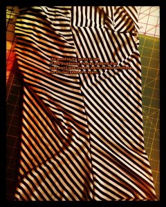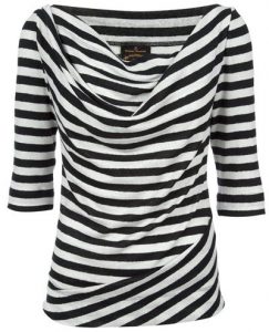 To motivate myself I hunted the internet for inspirations that don’t look too complicated. Something that’s just interesting enough to keep me going but not so ambitious that I have to drag my feet to finish. You know what, inspiration número uno came from another blogger – Tia Dia’s vavavoom stripy dress version of Donna Karan Vogue Pattern 1282. Her version looks Vivienne Westwoodish. So I followed that clue to find my inspiration número dos, a VW original top. The asymmetry were the hooks. And I know V1282 should be an easy peasy sew & VW top looks just about achievable if I stick to feature on the front only. The original may very well have asymmetrical back as well. But that’s a bit more effort than I’m willing to spent on this fabric miscalculation.
