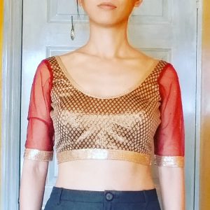 I decided to try a couple of custom-made choli blouses from House of Blouse to see how an “authentic” fit may look like on me. Because it’s made to measure, you can actually pick & mix your design details. I pushed the envelope and went for very low back neckline with no dori back ties. One big caveat before we talk about fit: the measurements instruction was rather imprecise, so that may have affected the fit…