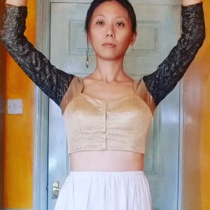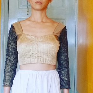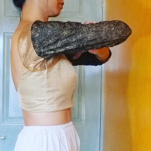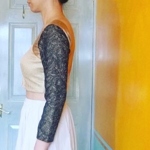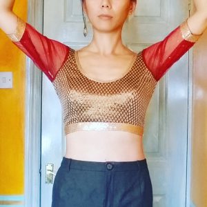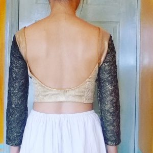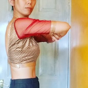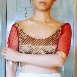 So there you have it (I think, for now anyway), if you want open neckline to stay on the shoulders, go with stretch Choli Blouse with 0 or even negative ease. If you insist on lovely pre-embroidered woven choli fabric with low open necklines, then stop being stubborn & keep that dori back neck-tie. That’s me told off then! 🙂