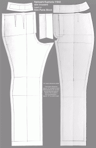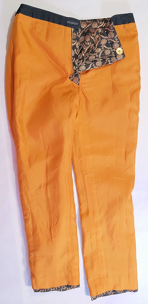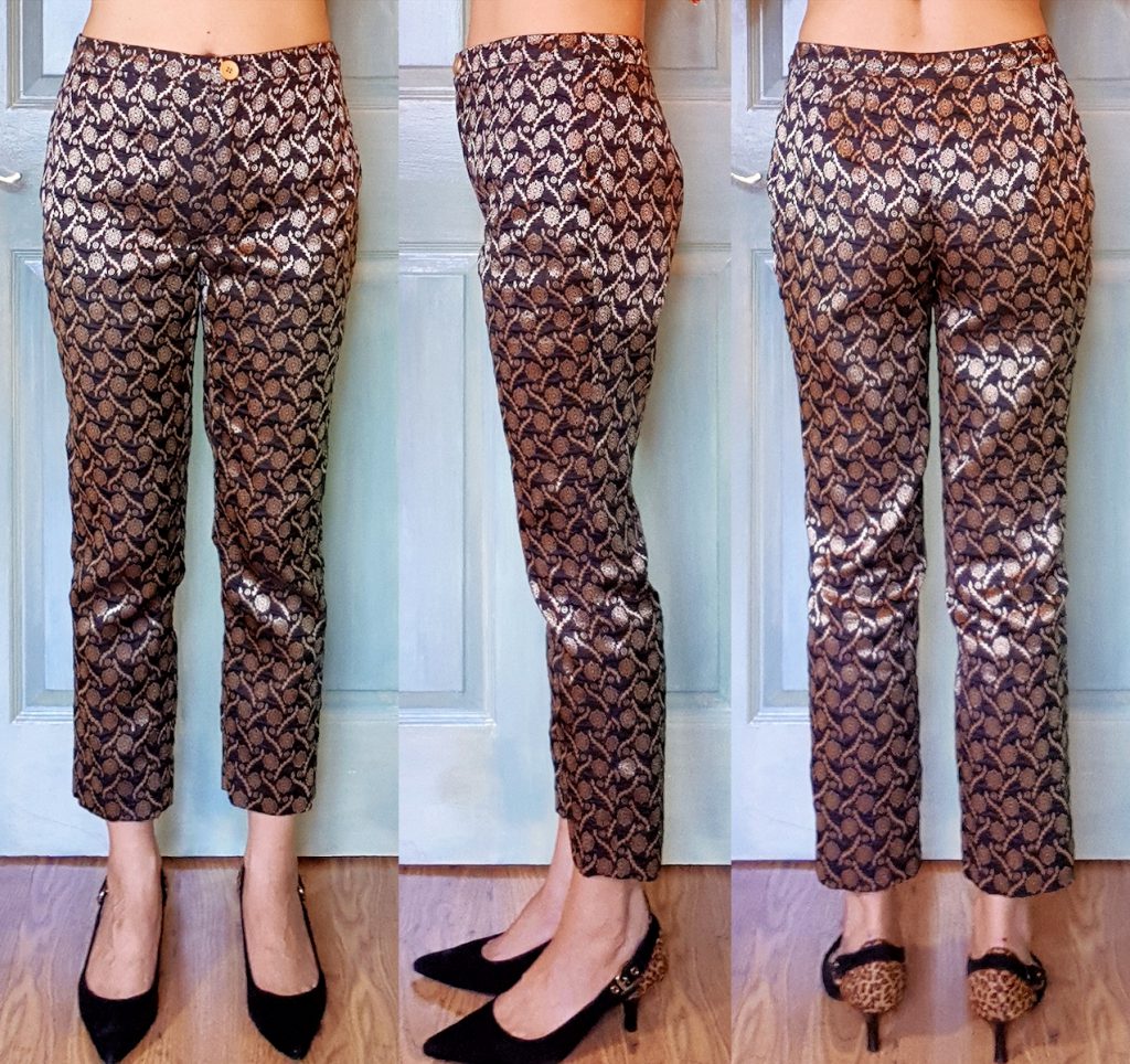 Since the fabric is a stiff Jacquard, the usual Asian instructions for a drapier Churidar Trousers won’t work. So as you already know I turned this into a Western style slim trousers, doubling as wearable muslin for my new Slim Pants / Trousers Block to statisfy Ms Two-Bird-One-Stone.