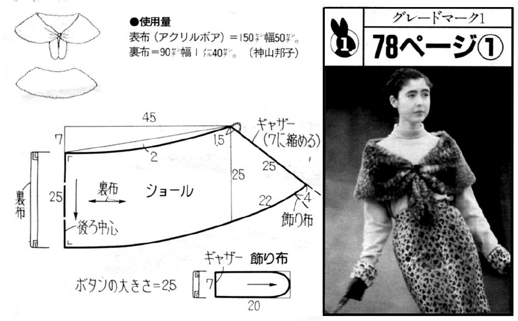 I initially cut the fabric to this Japanese pattern clipping I have. It’s from a feature on faux fur garments in So-En from ages ago. (Sadly So-En is no longer a pattern magazine, but just a fashion forward fashion magazine. And I’ve been a bit sacrilegious, having clipped out only those patterns I liked at the time. And you know how some tastes changes over time… 🙁