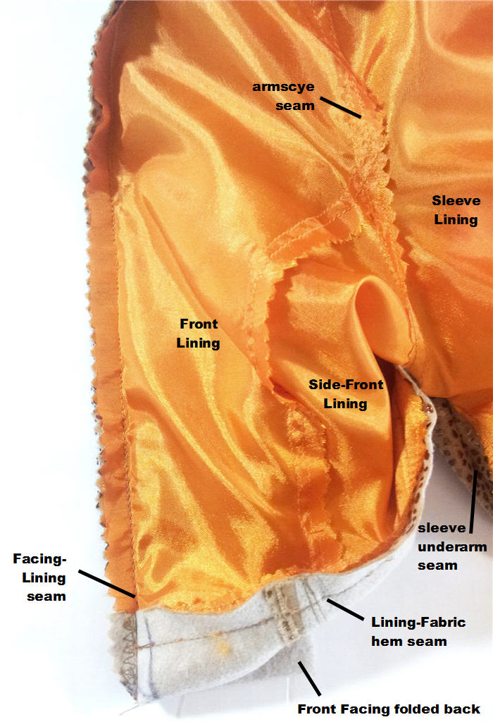 - I also tried her jacket bagging online tutorials 1 & 2 as well as her tutorials for a neat machine finish where the bottom of the front facing joins the lining & hem. Even with photos these were a bit difficult to follow. I had to proceed slowly. But in the end they did work! The bit for joining the sleeve with the sleeve lining was especially magical. I kept wondering if I was going to end up with an Escher straitjacket. Thankfully when turned right side out it was a perfectly formed sleeve with machine stitched sleeve hem/lining seam!