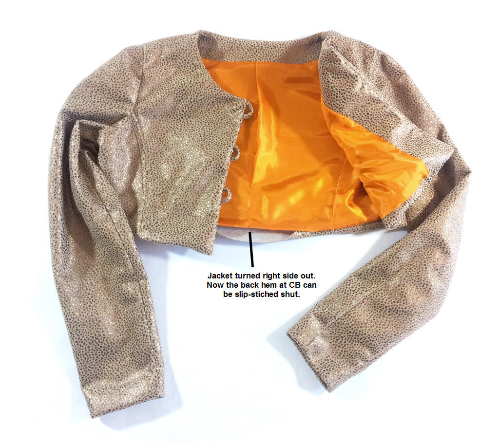 - I decided to leave the gap for turning the jacket right side out at the back hem rather than in one of the sleeve seams. I find lining fabric fray too easily – especially as I had reduced most seam allowances to 3/8″ like Kathleen instructed. So I didn’t want to deal with a fiddly/difficult to reach area like a sleeve seam. Back hem is easier to work with. I just slip stitch the small stretch of unfinished hem by hand.